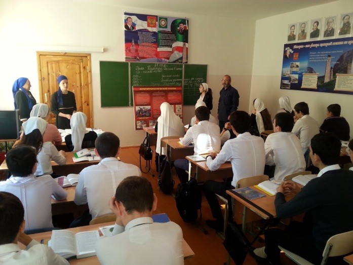 27.09.201627.092016 года заместителем директора по безопасности Хаджимурадовым М.А. и социальным педагогом Сусуровой Л.М. проведены беседы с учащимися 5-11 классов по профилактике проявлений терроризма и экстремизма «Мировое сообщество и терроризм». Хаджимурадов М.А. разъяснял учащимся сущность и общественную опасность терроризма, ответственность за совершение действий террористического характера
