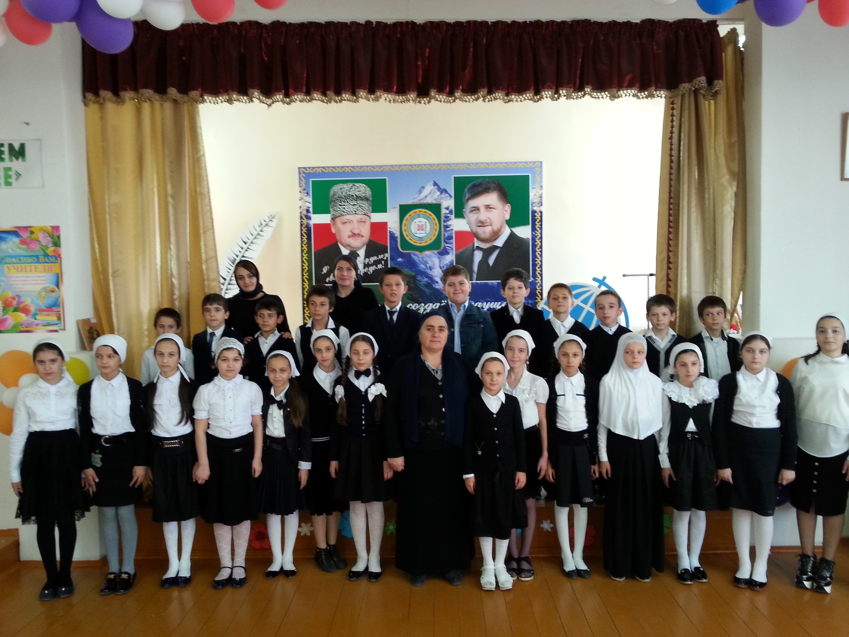 04.10.2016В вестибюле и фойе школы оформлены тематические выставки стенгазет, фотовыставка «Самый лучший город на земле». Прошел конкурс рисунков на асфальте среди 3-4-х классов «Мой Грозный». Накануне праздника в школе прошла торжественная линейка, посвященная знаменательной дате. На линейке выступила исполняющая обязанности директора школы Магамадова З.Э. и педагог по ДНВ Мусаев В.В..
