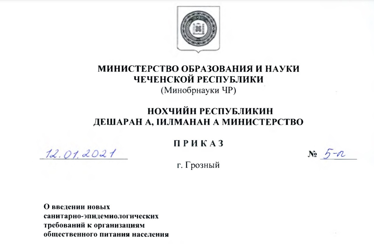 О введении новых санитарно-эпидемиологических требований к организациям общественного питания населения.