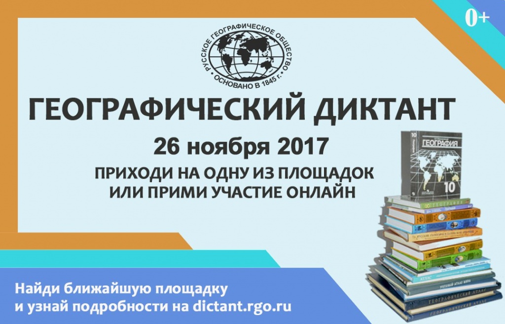 13.11.201726 ноября 2017 года в 12.00 все желающие смогут проверить свои знания по географии. Диктант на площадке начнется 26 ноября 2017 года в 12:00 по местному времени.