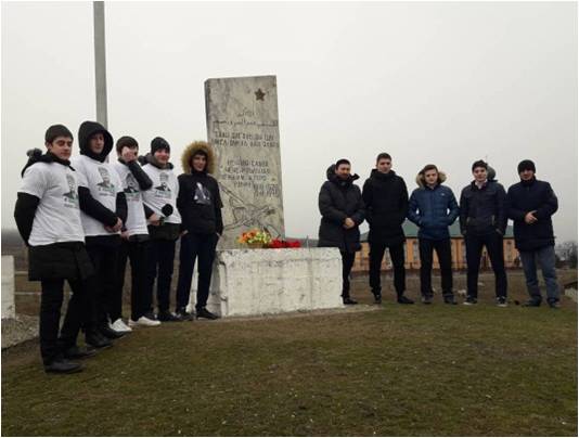 Члены патриотического отряда «Юные Кадыровцы» и школьного самоуправления «Содружество» возложили цветы к Мемориальной доске Воинов-интернационалистов.